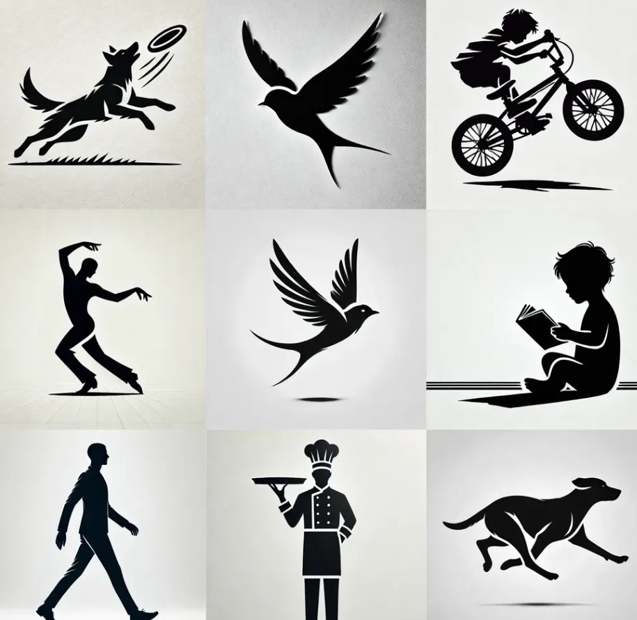 Prompt Black Silhouettes On White Backgrounds