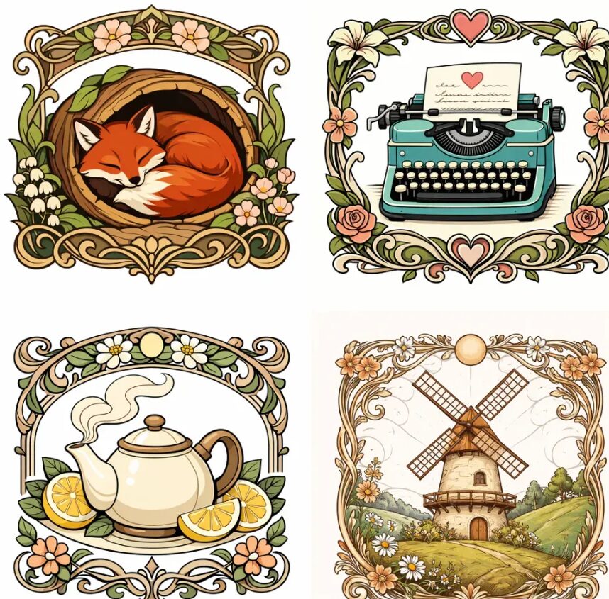 Prompt Line Art Nouveau Wholesome Charms